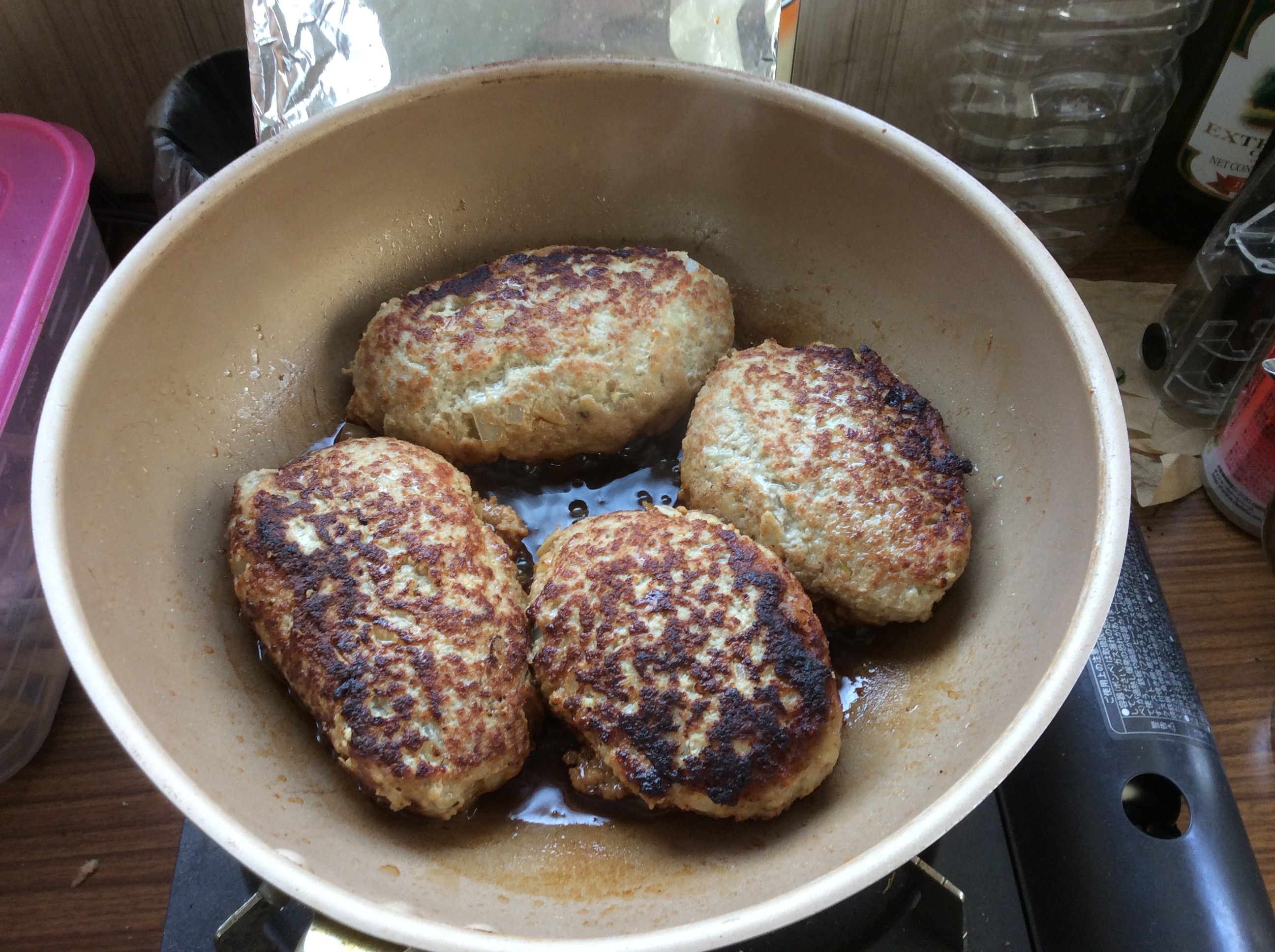 通常のハンバーグに比べネタがネタなのでかなり柔らかいです。とりあえず形成できるくらいになったら形成して他所によけておきます。