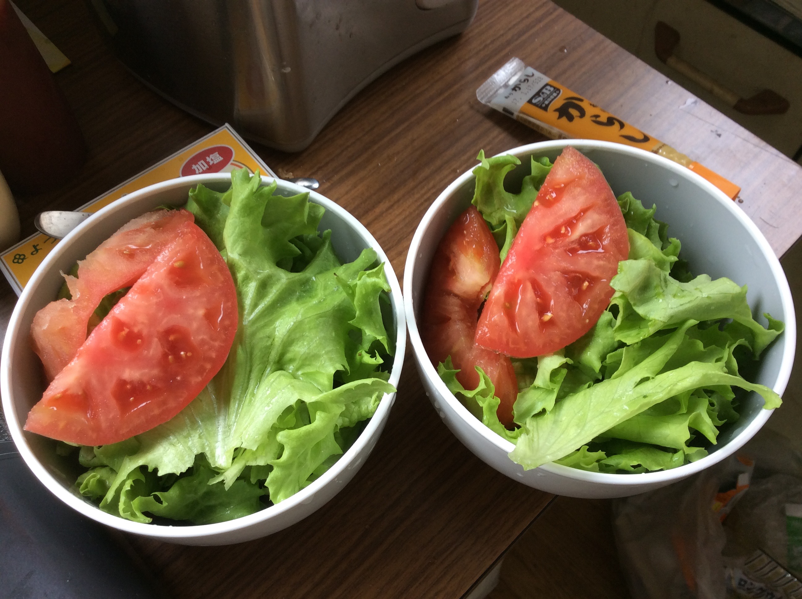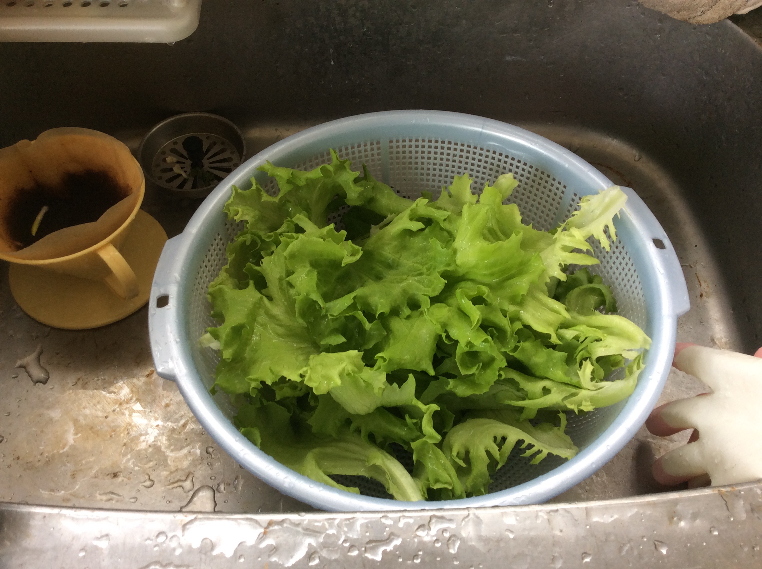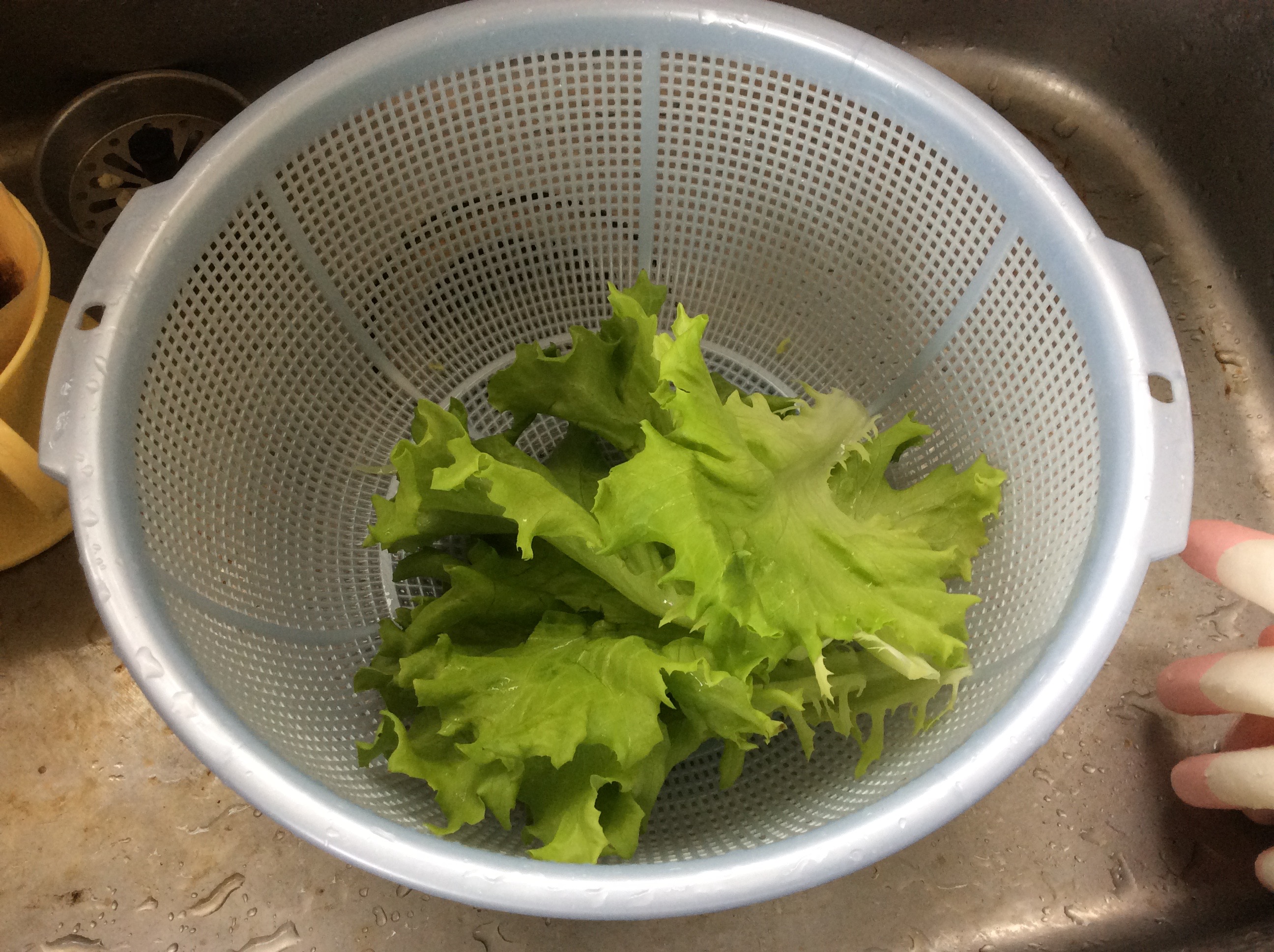パンに挟む以外の野菜はサラダとして食べられるようにしておく。要はちぎって盛る。